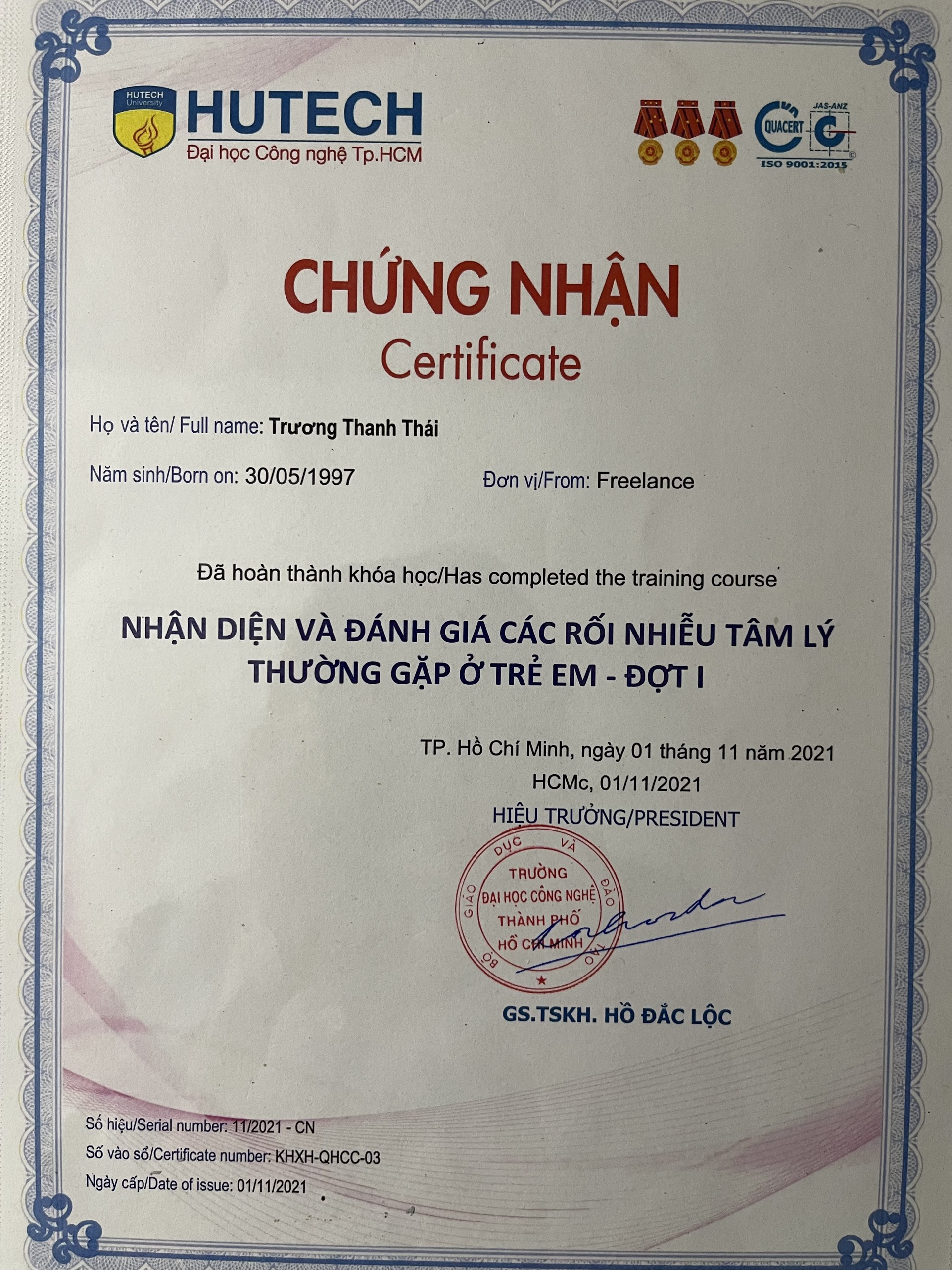 Đã hoàn thành khóa học: Nhận diện và đánh giá các rối nhiễu tâm lý thường gặp ở trẻ em