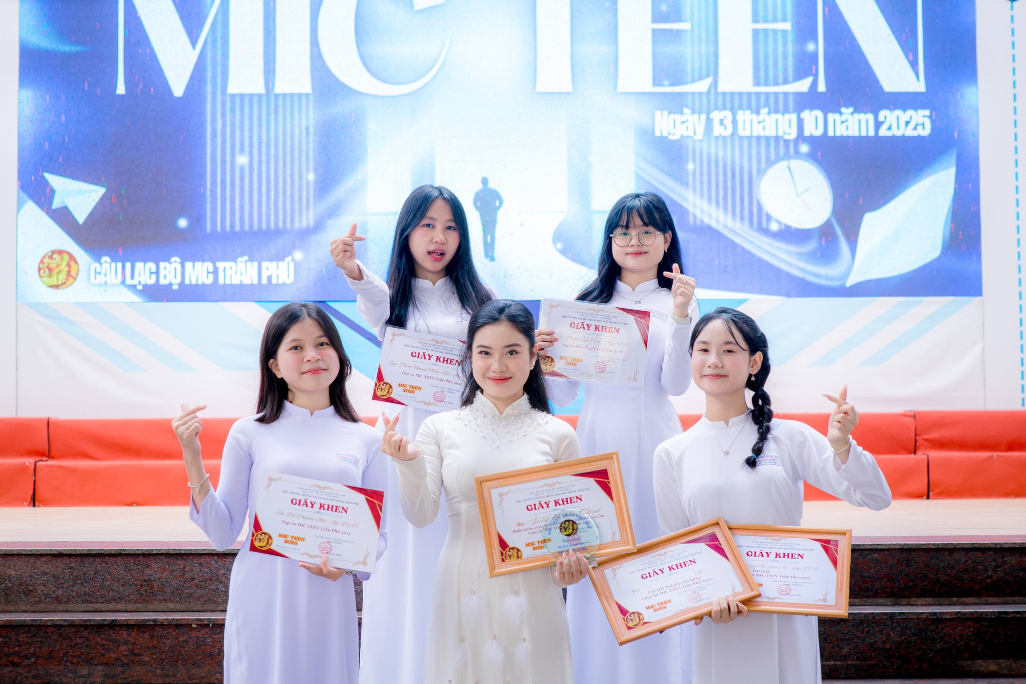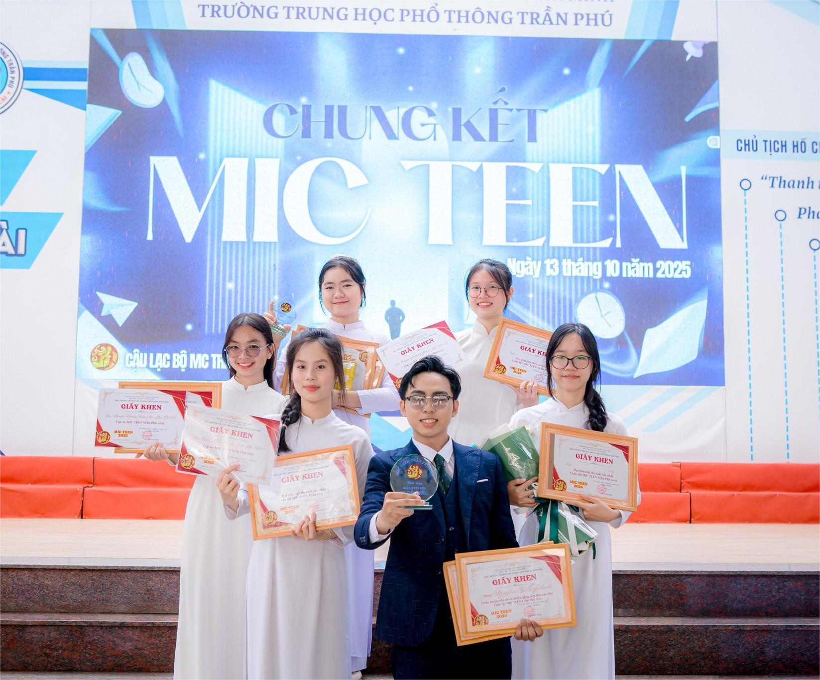 Huấn luyện viên Tiến Phước cùng các thành viên cũng xuất sắc đạt giải thưởng "Đội thi xuất sắc nhất" MIC Teen Trần Phú 2025.